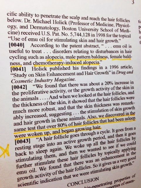 Please refer to the link above to read the application in it's entirety, you'll learn why Emu Oil is the preferred carrier as well as why Rosemary, Lavender, Cedarwood and Thyme were the chosen therapeutic grade essential oils. Fascinating stuff!!
